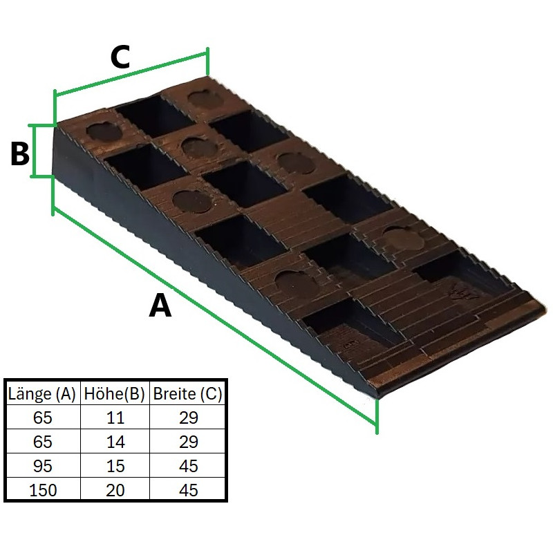 sehr hohe Traglast (somit auch sehr gut als Unterlegekeil geeignet)