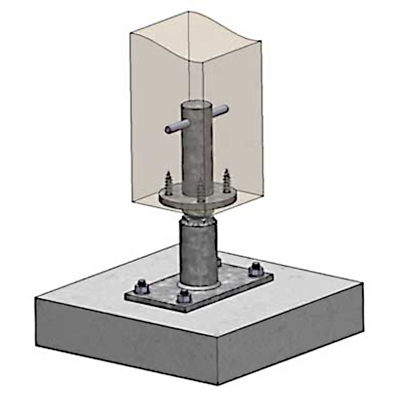 Die Pfostenträger sind für den Anschluss von Holzstützen mit einem Querschnitt ab 8/8 cm geeignet.